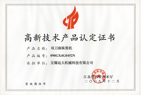 高品證書(shū)(雙刀座縱剪機(jī))