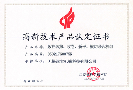 高品證書(shū)(數(shù)控縱剪、收卷、矯平機(jī)組)