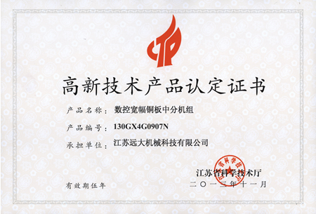 高品證書(shū)(數(shù)控寬幅銅板中分機(jī)組)