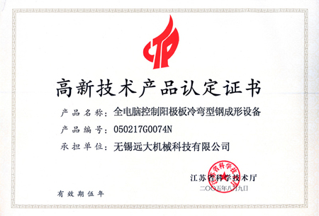 高品證書(shū)(全電腦控制陽(yáng)極板冷彎型鋼)