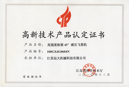 高品證書(shū)(高強(qiáng)度45飛剪機(jī))